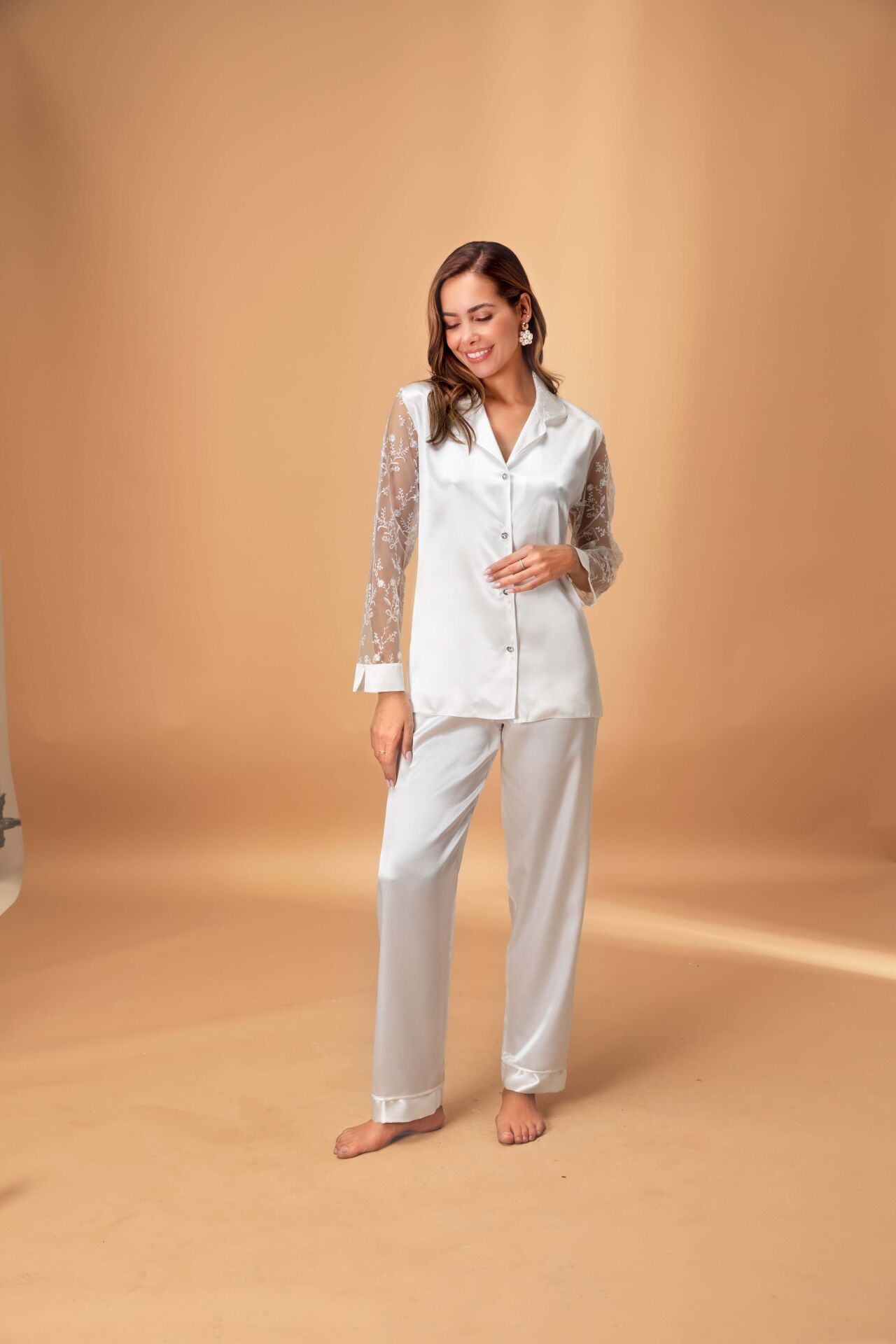 Saten Gecelik Sabahlık Şort Pijama Takımı Altılı Set