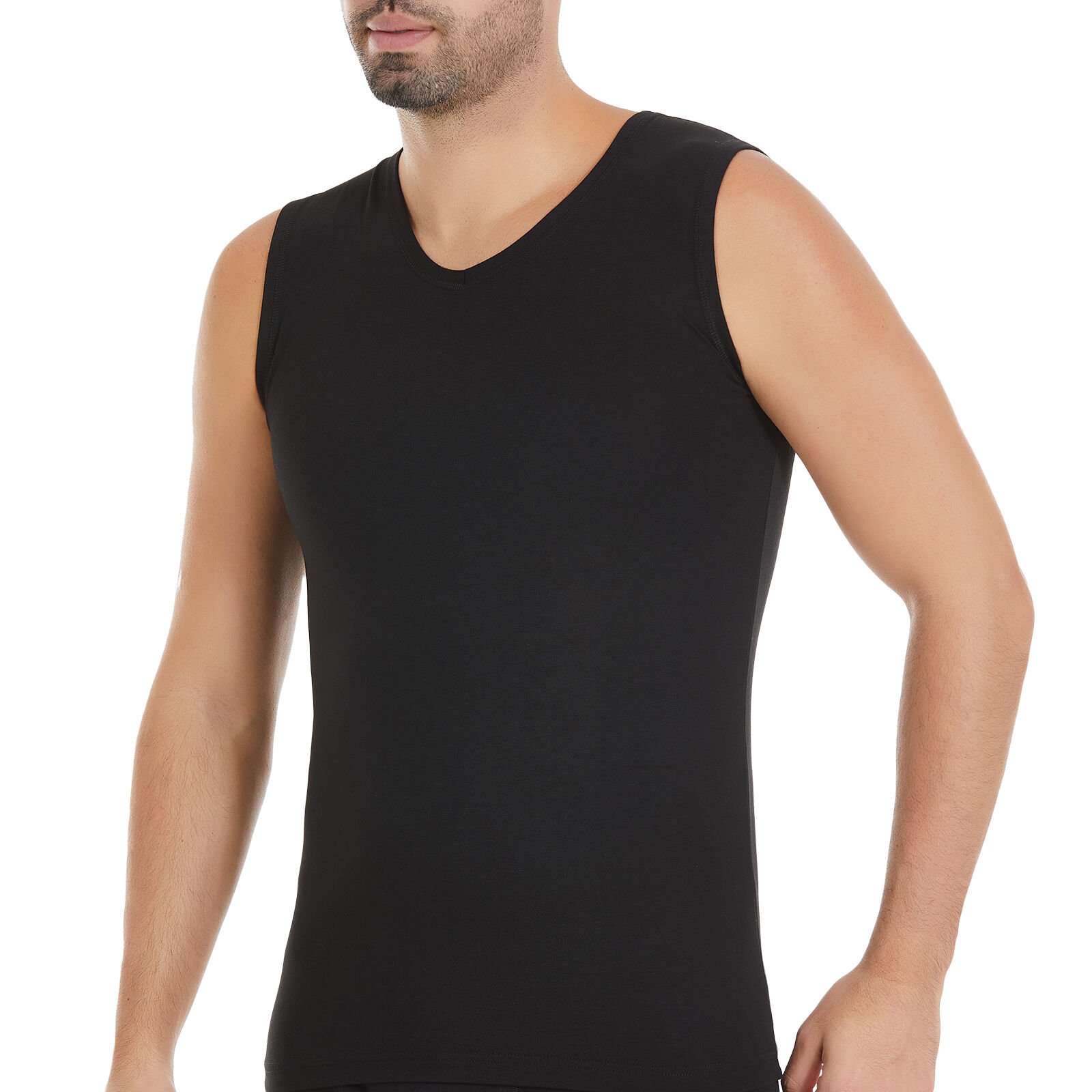 Seçenek 2 (Fonksiyonel): Yıldız V Yaka Kesik Kol Modal Fanila - Gömlek Altı Görünmez Atlet (Siyah/Beyaz)